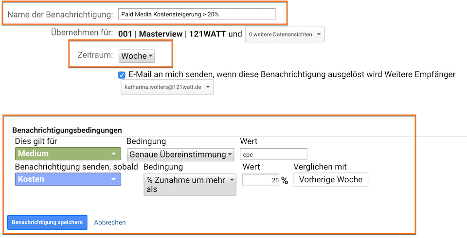Kosten Monitoring mit Google Analytics Custom Alerts
