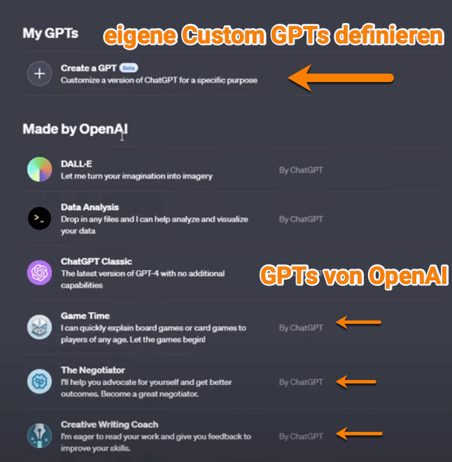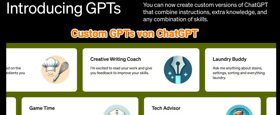 - Beispiele: Erste Beispiele von Custom GPTs
