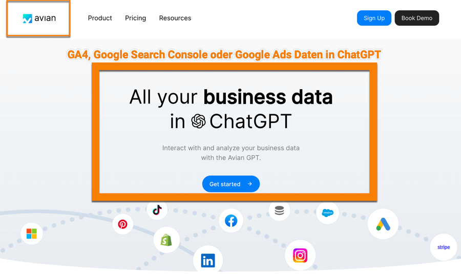 Das Avian-GPT ist ein CustomGPT, das es dir erlaubt, mit deinen Daten, zum Beispiel aus GA4, der Google Search Console, Meta oder LinkedIn Ads, zu sprechen. „Sprechen“ heißt hier Unterstützung zu bekommen bei der Analyse deiner Daten. Seine Stärken hat die Anwendung besonders bei der Interpretation deiner Daten oder ganz neuen Berechnungen, die du so nicht in Tools wie GA4 durchführen kannst. Zu finden ist Avian-GPT bei ChatGPT oder direkt bei Avian-GPT.