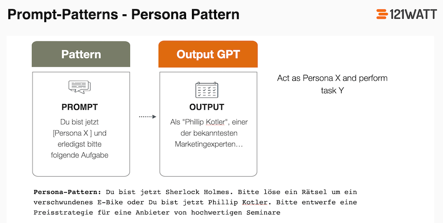 Prompt-Struktur: „Act as Persona X and perform task Y“