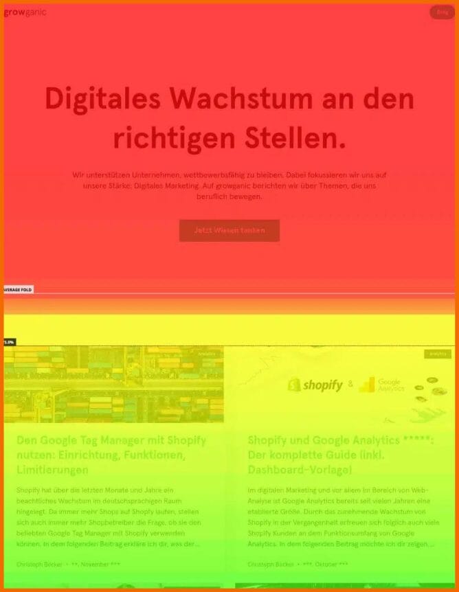 Abbildung einer Heatmap, die das Scrollverhalten der Nutzer:innen darstellt. Quelle: Growganic.