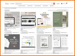 Bei Etsy findest du zahlreiche digitale Produkte, wie beispielsweise Marketing-, Content- oder Redaktionspläne. Diese werden nach dem Kauf-Vorgang heruntergeladen und direkt verwendet. Sie sind schön und übersichtlich aufbereitet und können deinem oder deiner Lieblings-Online-Marketing-Manager:in den Arbeitsalltag erleichtern. Stöbere dich durch den Shop und finde den passenden Plan.