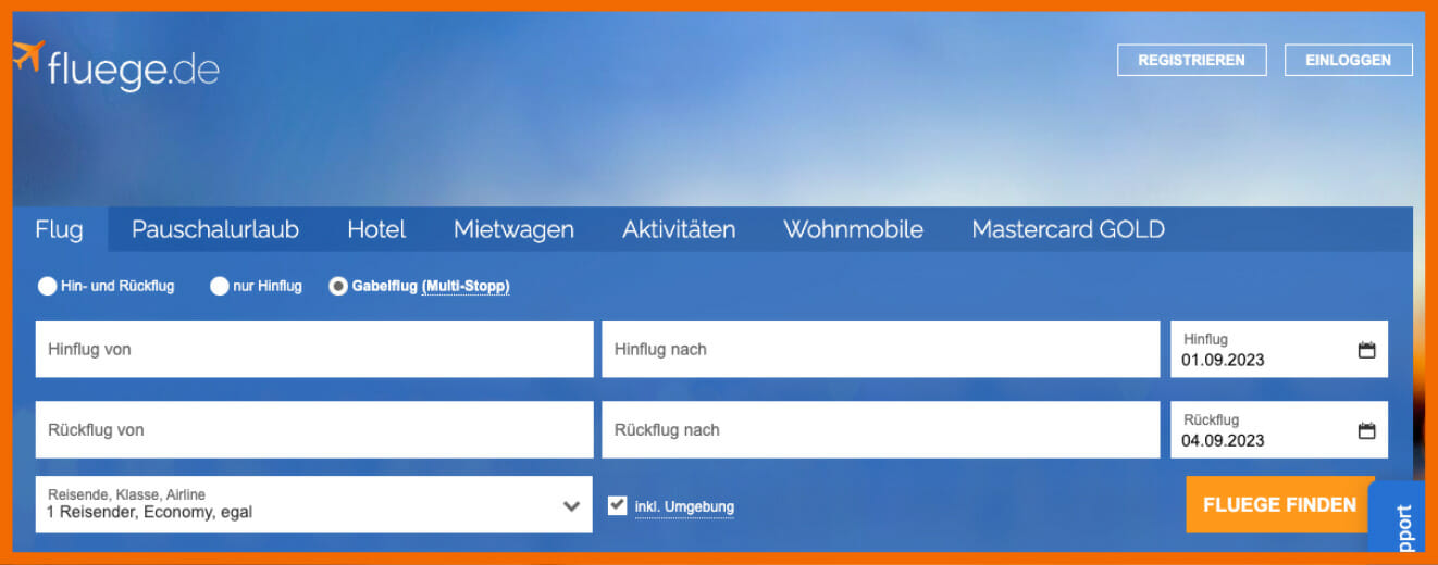 • Ein erweitertes Suchfeature, das sowohl einfache als auch komplexe Abfragen ermöglicht. z.B. neben der einfachen Suche von Hin- und Rückflug auch die Suche nach Gabelflügen auf fluege.de