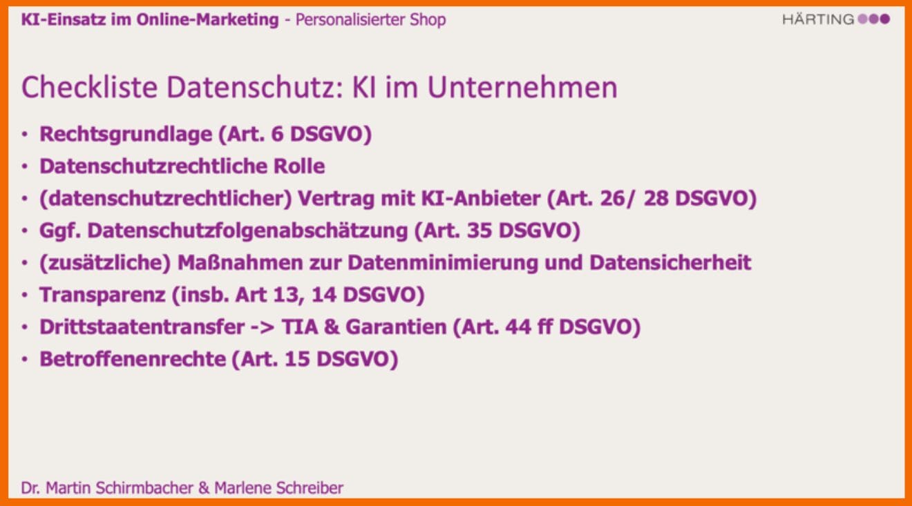 Marlene und Martin haben für dich eine Checkliste zum Datenschutz für den KI-Einsatz im Unternehmen zusammengestellt: