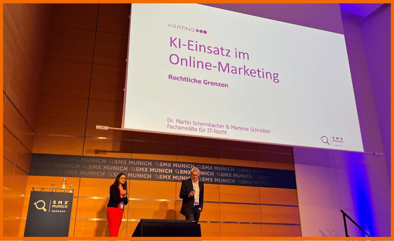 Schauen wir uns erst einmal an, welche rechtlichen Aspekte bei der Nutzung einer KI wie beispielsweise ChatGPT in Deutschland berührt werden. Marlene Schreiber und Dr. Martin Schirmbacher von der Rechtsanwaltskanzlei HÄRTING haben uns im Rahmen ihres Vortrags auf der SMX einen guten Überblick gegeben: