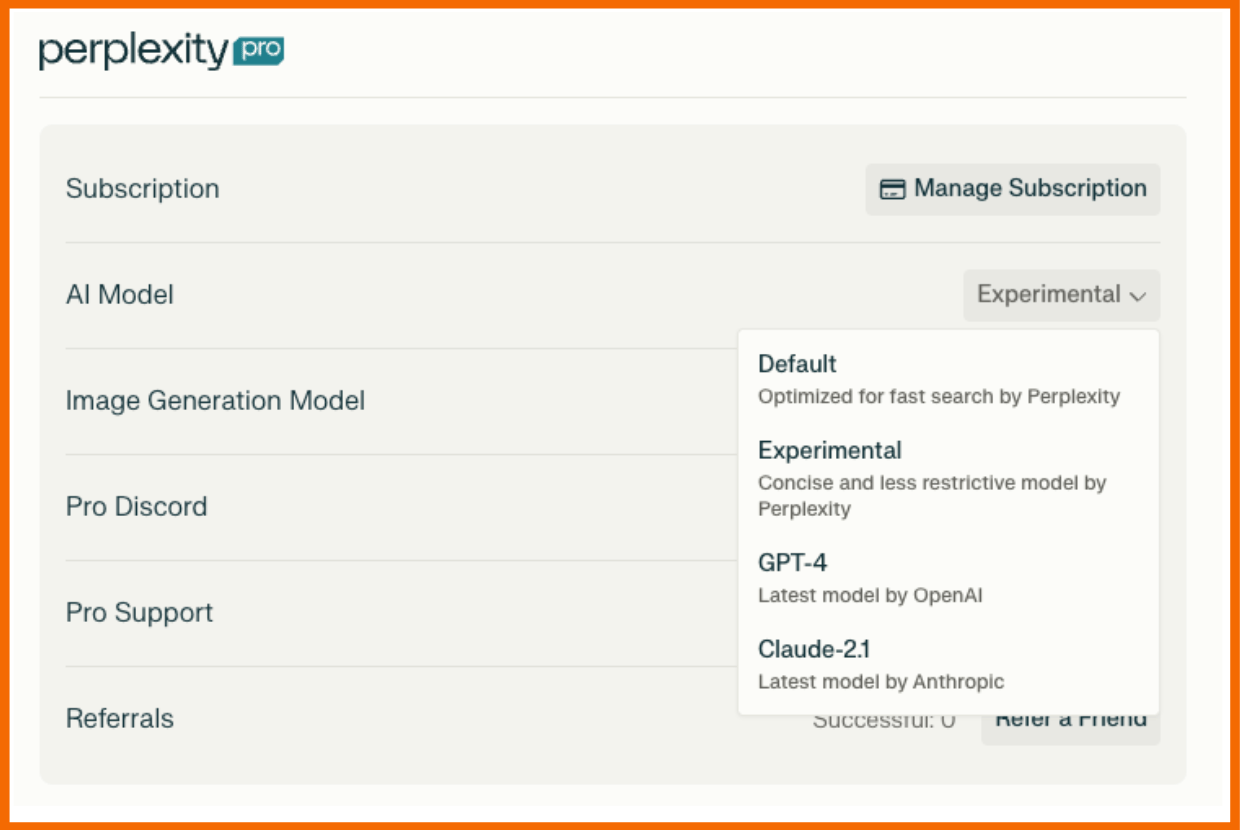 • Experimentelle Modelle: Neben den etablierten Modellen wie GPT-4 und Claude 2.1 bietet Perplexity Pro auch Zugang zu experimentellen Modellen, die für spezifische Anwendungsfälle oder innovative Ansätze in der Textverarbeitung optimiert sind​​. Um die experimentellen Modelle zu nutzen, gehe in die Einstellungen deines Perplexity Pro-Kontos und wähle das bevorzugte Modell aus, einschließlich der experimentellen Optionen. Diese Flexibilität ermöglicht es dir, die KI-Modelle je nach Bedarf anzupassen und zu wechseln, um die bestmöglichen Ergebnisse zu erzielen.