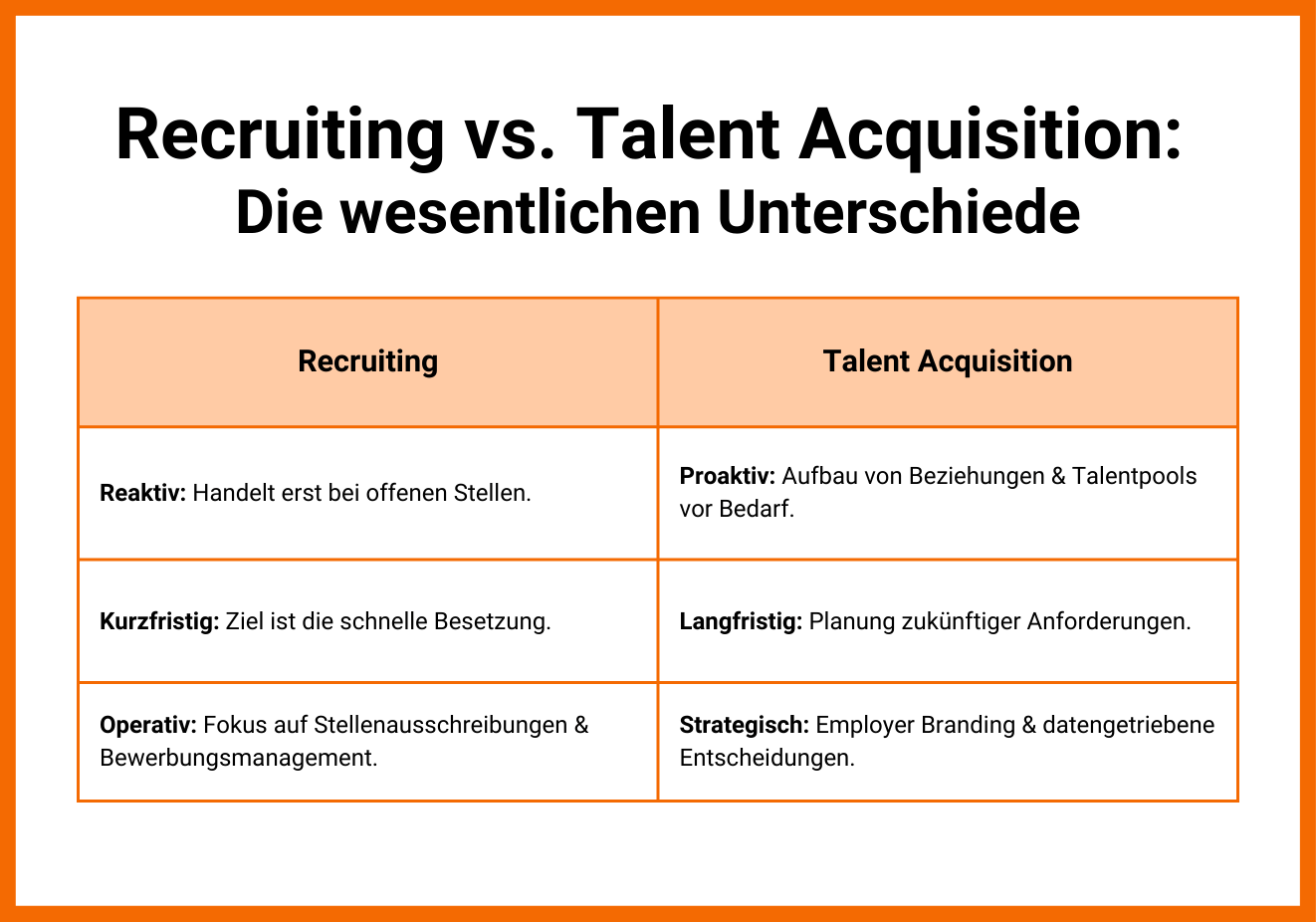 - Ganzheitlicher Ansatz: TA kombiniert Employer Branding, Talentpool-Management und Marktanalysen.