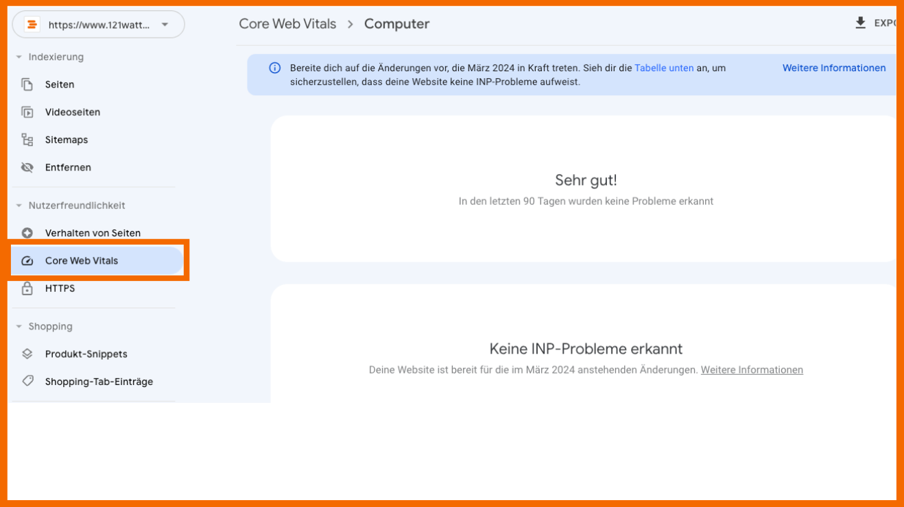 Überprüfe deinen aktuellen INP-Wert und nimm ggf. Anpassungen an deiner Website vor. Den neuen Messwert kannst du zum Beispiel in folgenden Systemen einsehen: