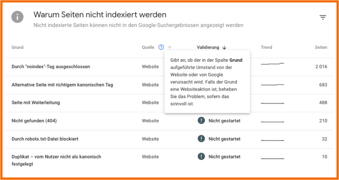 Einen neuen Filter möchten wir dir noch vorstellen: Im Index Coverage Report gibt es die Quelle, die dir sagt, ob das Problem von deiner Webseite oder Google kommt.