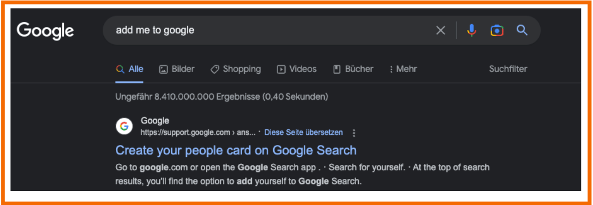 People Cards ist wie eine Visitenkarte für die Google-Suche und vergleichbar mit dem Google-Unternehmenseintrag, nur eben für Personen. Bislang war dieses Projekt nur in Indien live, jetzt wurden diese Cards auch in den USA ausgespielt. Um eine People Card anzulegen, kannst du einfach bei Google “add me to google” suchen.