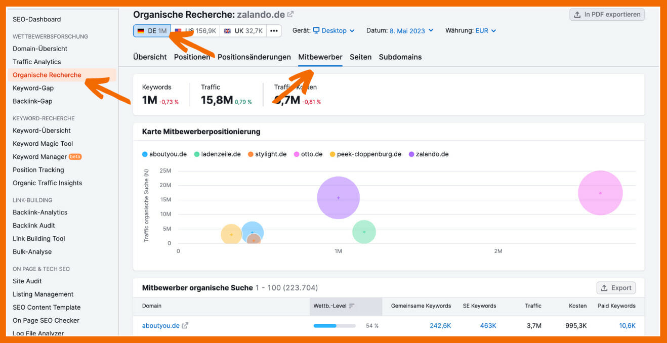 Im nächsten Schritt überprüfst du, wie du im Vergleich zu deiner Konkurrenz abschneidest.