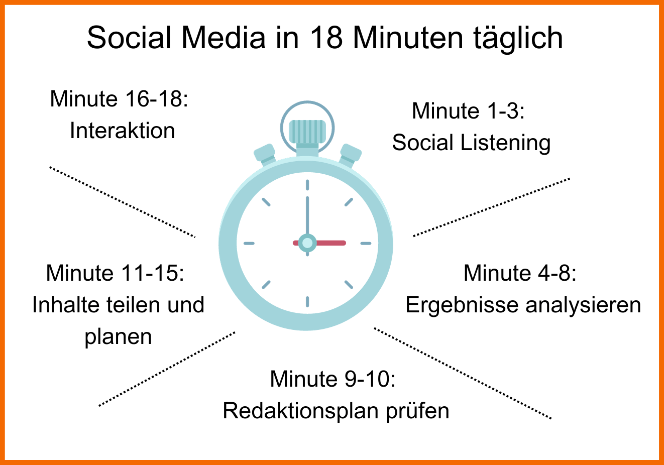 Mit nur 18 Minuten pro Tag dein Social-Media am Laufen halten geht nicht? Geht doch! Wir zeigen dir, wie und worauf du dich dabei konzentrieren solltest. Als Grundlage beziehen wir uns auf diesen Artikel von Hootsuite.
