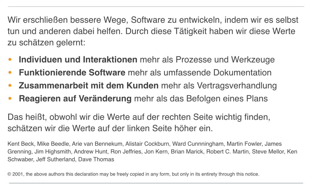 Im Juni 2015 trafen sich einige bedeutende Marketer in San Francisco und benannten die folgenden Werte im Agile Marketing Manifesto als besonders wichtig: