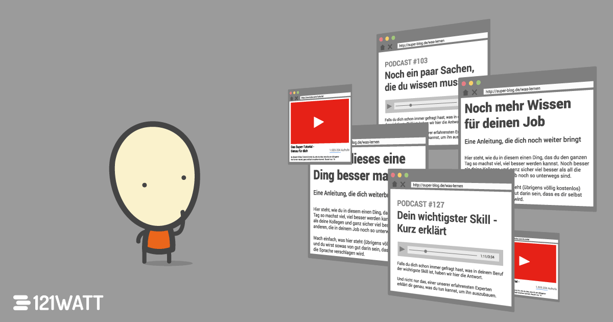 Das Web ist voll von Weiterbildungsangeboten. Und damit meine ich nicht nur Seminare und Lehrgänge, die geballtes Wissen innerhalb von Stunden oder Tagen vermitteln. Was ich meine, sind die vielen nützlichen Texte, Videos und Podcasts, die jeden Tag in den Blogs verschiedener Branchen veröffentlicht werden. Darunter befinden sich tatsächlich sehr viele, die es wert sind, gelesen, angesehen oder angehört zu werden. Denn sie enthalten neben Denkanstößen auch anwendbares und vor allem aktuelles Wissen.