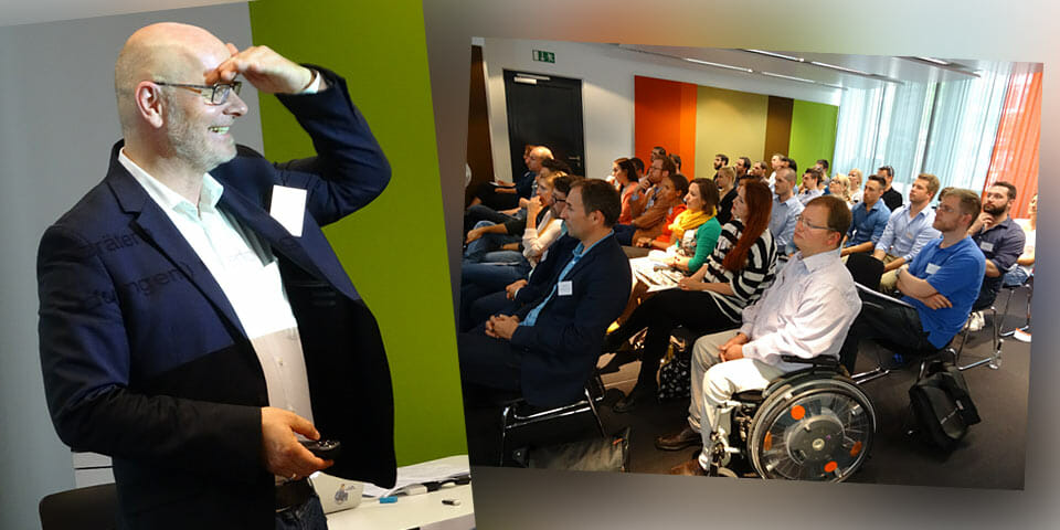 - Matthias Weth, Geschäftsführer von Catbird Seat, hielt als erster seinen Vortrag zum Thema: „Wie Mobilität die digitale Geschäftswelt verändert“.