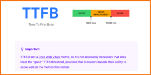 Wenn du aktuell einen Page Speed Test machst, siehst du eine weitere neue Metrik: Time to First Byte (TTFB). Diese grundlegende Kennzahl gibt dir Aufschluss über die Verbindungsaufbauzeit und die Reaktionsfähigkeit von Webservern. Sie hilft dir zu erkennen, ob dein Webserver zu langsam auf Anfragen reagiert. Das Chrome-Web-Dev-Team stellt aber klar, dass diese Metrik aktuell kein Bestandteil der Core Web Vitals ist, dieser Wert also nicht in deinen Score hinein fließt.