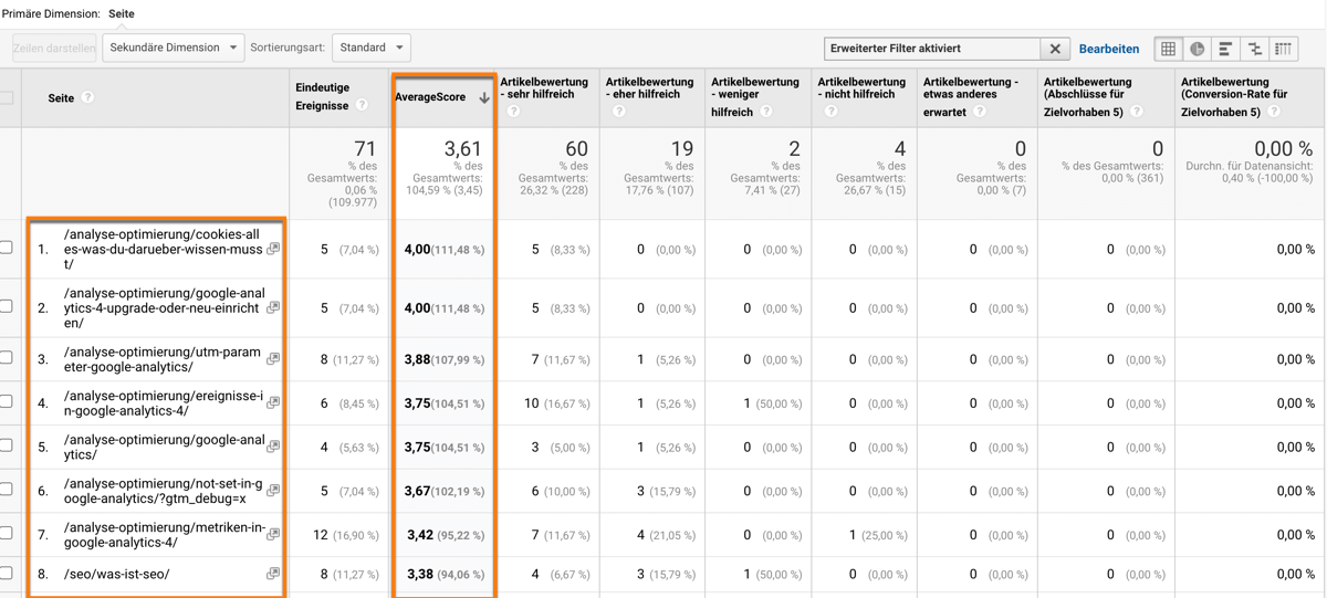 • Topic: Du bist stark zu einem Thema, wie wir zu Seminaren, SEO oder Google Analytics -> neue Inhalte erhalten in der Regel gute Positionen innerhalb weniger Tage.