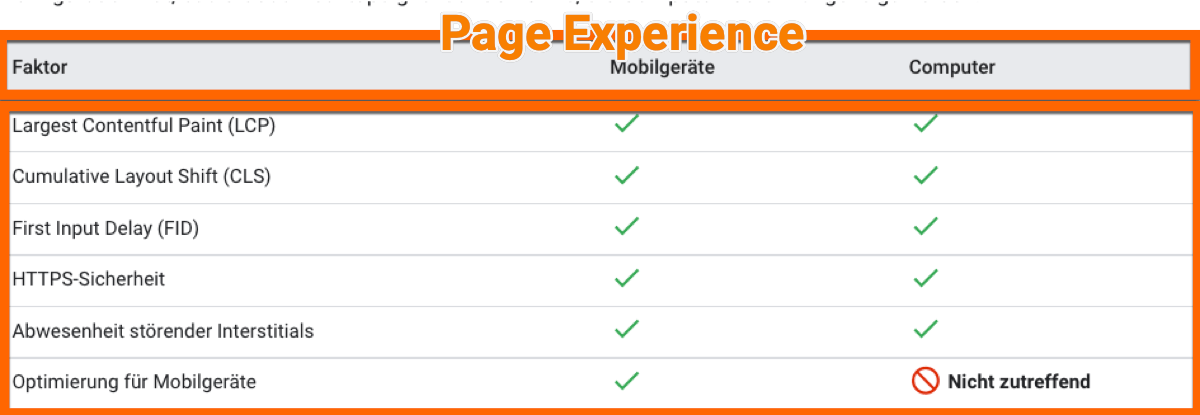 • Page Experience: Core Web Vitals und Mobile Optimierung als Basis für die Nutzererfahrung auf deiner Seite