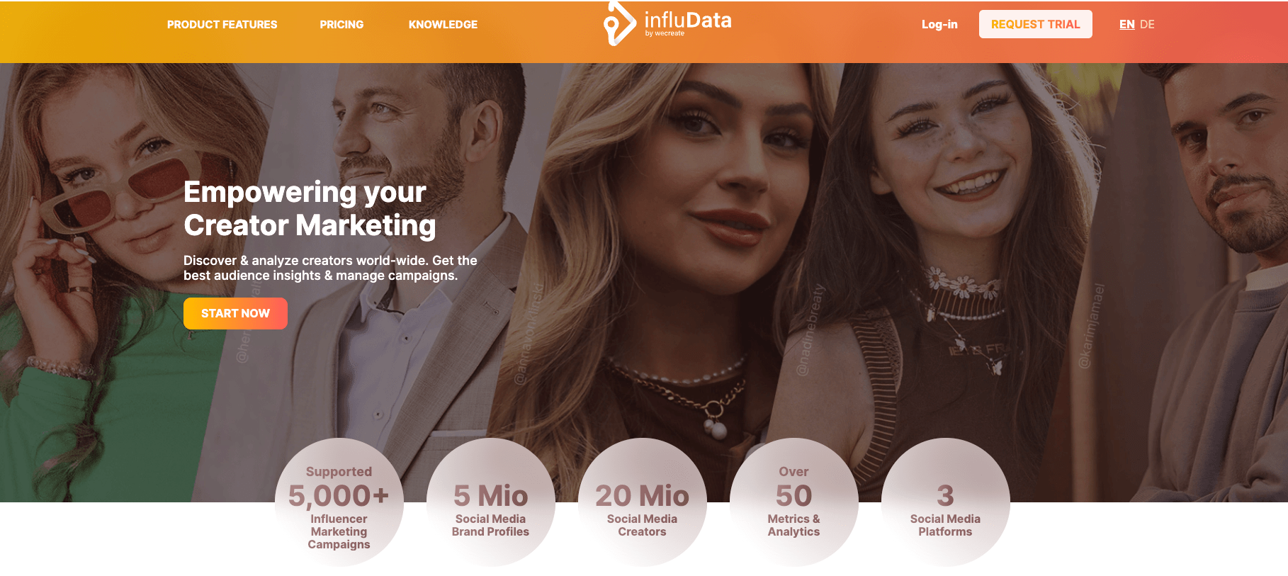 Zum anderen kannst du außerhalb der Plattformen mit Tools wie InfluData nach geeigneten Influencer:innen suchen. Allerdings werten Tools wie dieses nur quantitativ und nicht qualitativ aus. Weitere Tools stellen wir dir am Ende des Artikels vor.