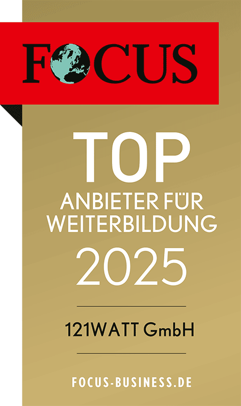 - Zertifikat: Unser 121WATT-Teilnahmezertifikat steht in unserer Branche für tiefgreifendes Praxiswissen und gibt deiner Karriere einen Schubs.